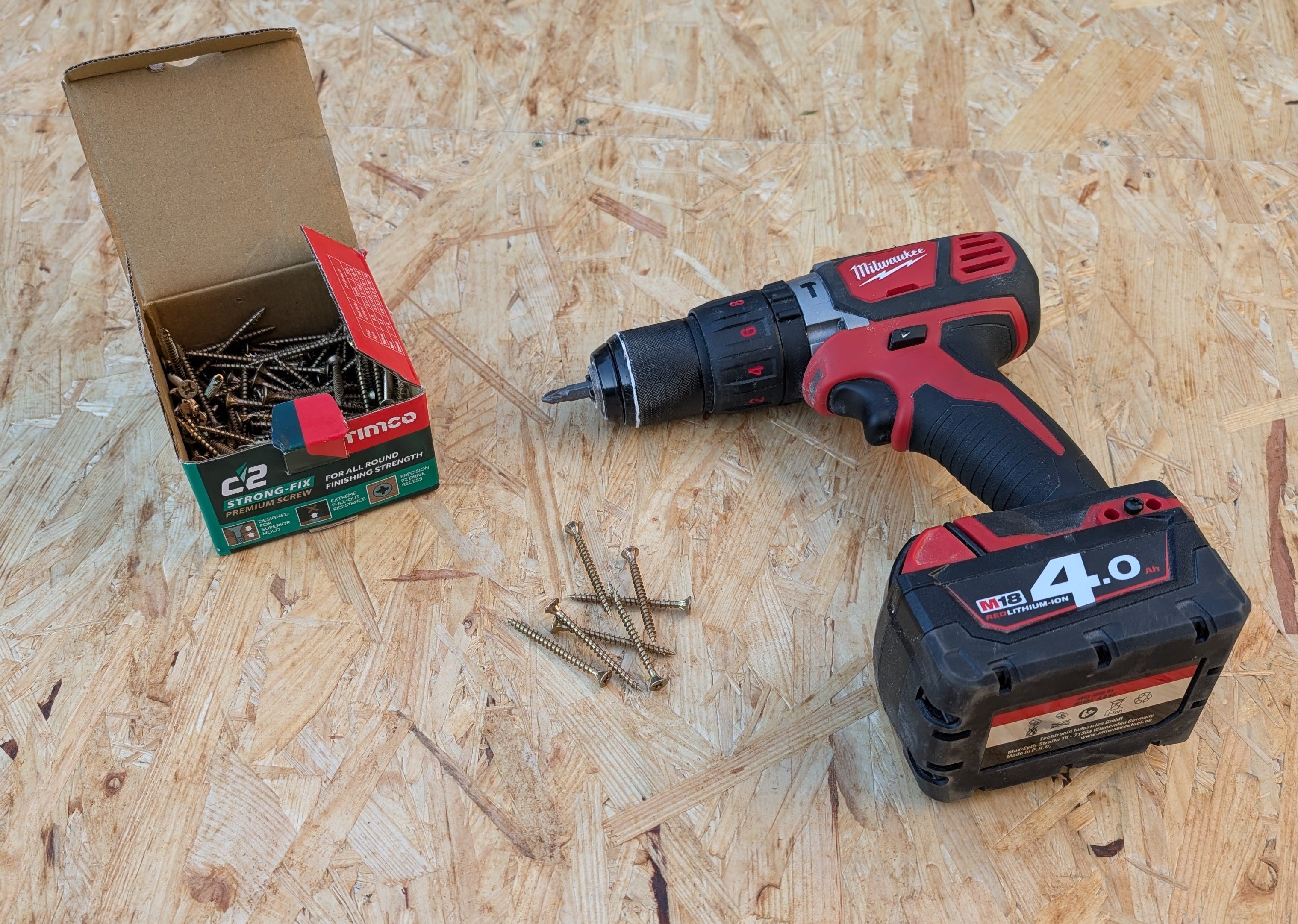 When it came to fitting the OSB floor boards, I needed help, so I enlisted an old friend with loads of shed-building experience: My drill. It’s built every shed I’ve built, so it had to make an appearance.